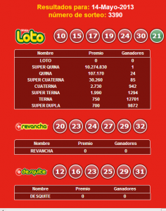 Nuestro objetivo es facilitarte el acceso a los resultados de Loto Chile, por esto, hemos desarrollado un nuevo sistema automático para que revises tus números: http://webapp.resultadoslotochile.com, e intentamos darte una mejor alternativa en comparación con el sitio oficial. Seleccionas el sorteo, ingresas tus números, y el sistema automáticamente te dirá la cantidad de aciertos que tuviste en las distintas categorías.