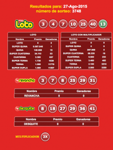Nuestro objetivo es facilitarte el acceso a los resultados de Loto Chile, por esto, hemos desarrollado un nuevo sistema automático para que revises tus números: http://webapp.resultadoslotochile.com, e intentamos darte una mejor alternativa en comparación con el sitio oficial. Seleccionas el sorteo, ingresas tus números, y el sistema automáticamente te dirá la cantidad de aciertos que tuviste en las distintas categorías.
