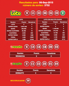 Nuestro objetivo es facilitarte el acceso a los resultados de Loto Chile, por esto, hemos desarrollado un nuevo sistema automático para que revises tus números: http://webapp.resultadoslotochile.com, e intentamos darte una mejor alternativa en comparación con el sitio oficial. Seleccionas el sorteo, ingresas tus números, y el sistema automáticamente te dirá la cantidad de aciertos que tuviste en las distintas categorías.