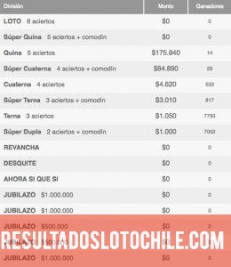 Nuestro objetivo es facilitarte el acceso a los resultados de Loto Chile, por esto, hemos desarrollado un nuevo sistema automático para que revises tus números: http://webapp.resultadoslotochile.com, e intentamos darte una mejor alternativa en comparación con el sitio oficial. Seleccionas el sorteo, ingresas tus números, y el sistema automáticamente te dirá la cantidad de aciertos que tuviste en las distintas categorías.