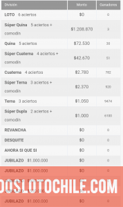 Nuestro objetivo es facilitarte el acceso a los resultados de Loto Chile, por esto, hemos desarrollado un nuevo sistema automático para que revises tus números: http://webapp.resultadoslotochile.com, e intentamos darte una mejor alternativa en comparación con el sitio oficial. Seleccionas el sorteo, ingresas tus números, y el sistema automáticamente te dirá la cantidad de aciertos que tuviste en las distintas categorías.