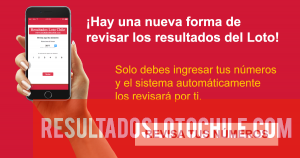 Nuestro objetivo es facilitarte el acceso a los resultados de Loto Chile, por esto, hemos desarrollado un nuevo sistema automático para que revises tus números: http://webapp.resultadoslotochile.com, e intentamos darte una mejor alternativa en comparación con el sitio oficial. Seleccionas el sorteo, ingresas tus números, y el sistema automáticamente te dirá la cantidad de aciertos que tuviste en las distintas categorías.